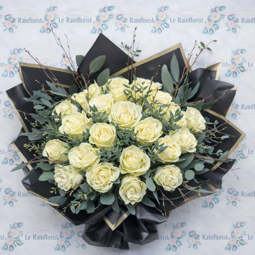 Soft, elegant and effortlessly classic. This luxury bouquet features 25 premium cream roses nestled with complementary foliage for a full, textured finish. Expertly hand-tied and aqua packed to keep the blooms hydrated, then presented in a stylish gift box for a beautiful first impression. Perfect for birthdays, anniversaries, congratulations or simply to brighten someone’s day.